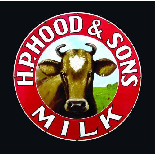 H. P. Hood and Sons Milk, Porcelain Sign. Superb colors and image. How can you not love that face. Near mint condition. 30 inch diameter.
