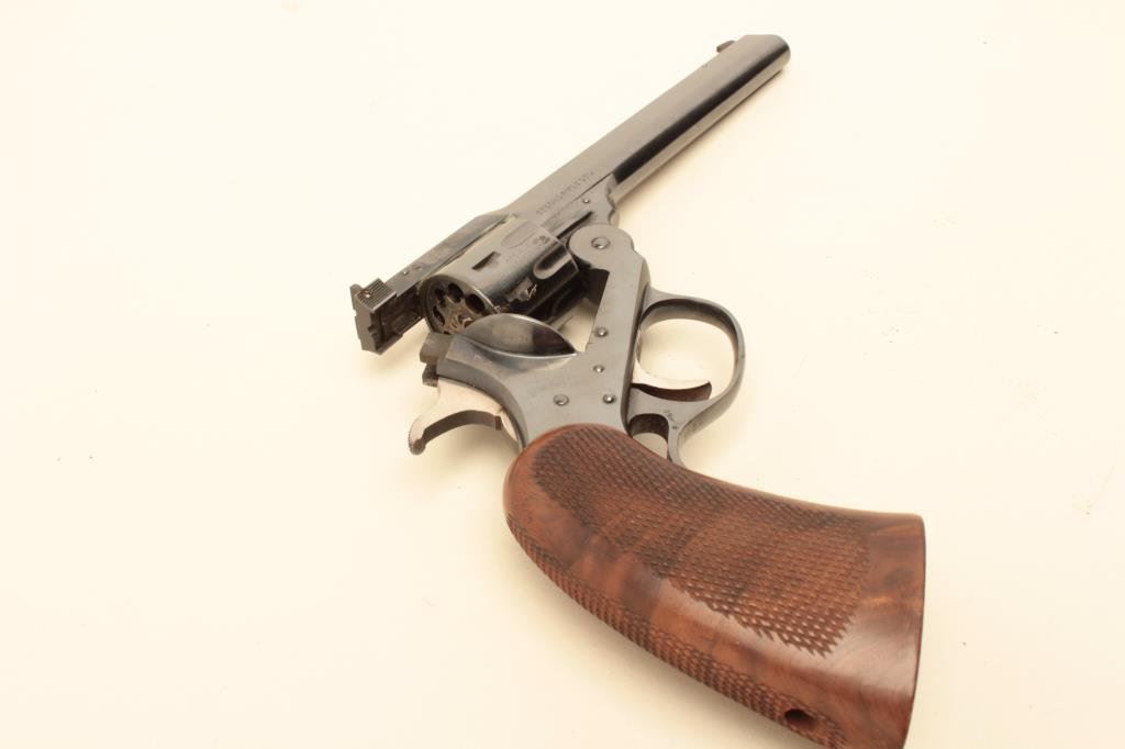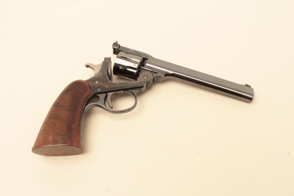 S/N S18342. Fine to excellent condition with a small area of loss on the cylinder. Excellent select checkered wood grips. Crisp overall. Seldom found. (Modern/PPT) Est.: $200-$400
