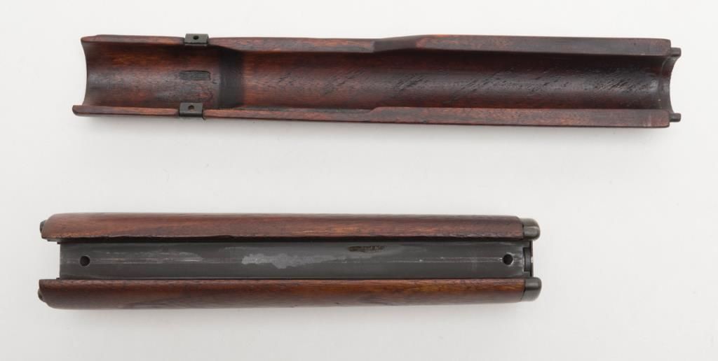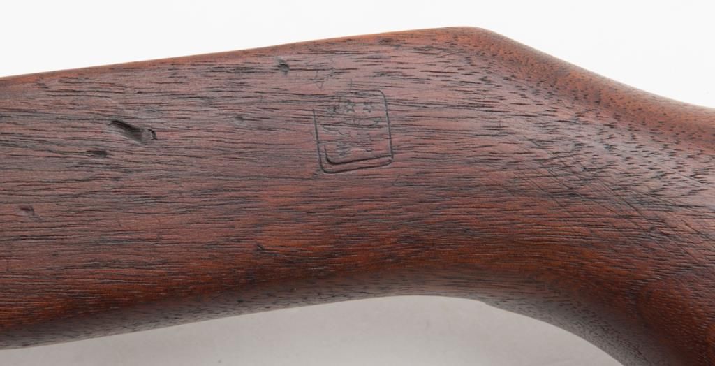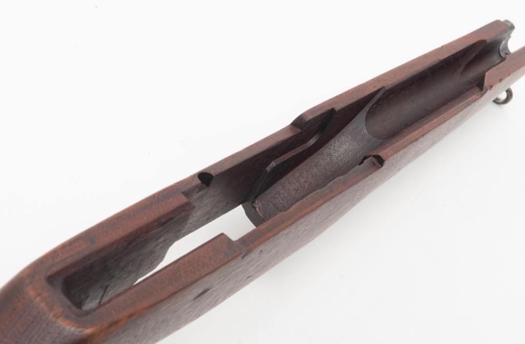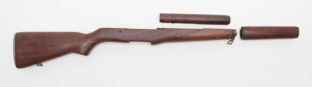 HRA Garand stock with handguards, butt plate and sling swivels in overall very good to fine condition with circle P proof and stars over spread eagle cartouche on left side of stock above trigger well; “DOS”; Korean War period. Est.: $200-$400.