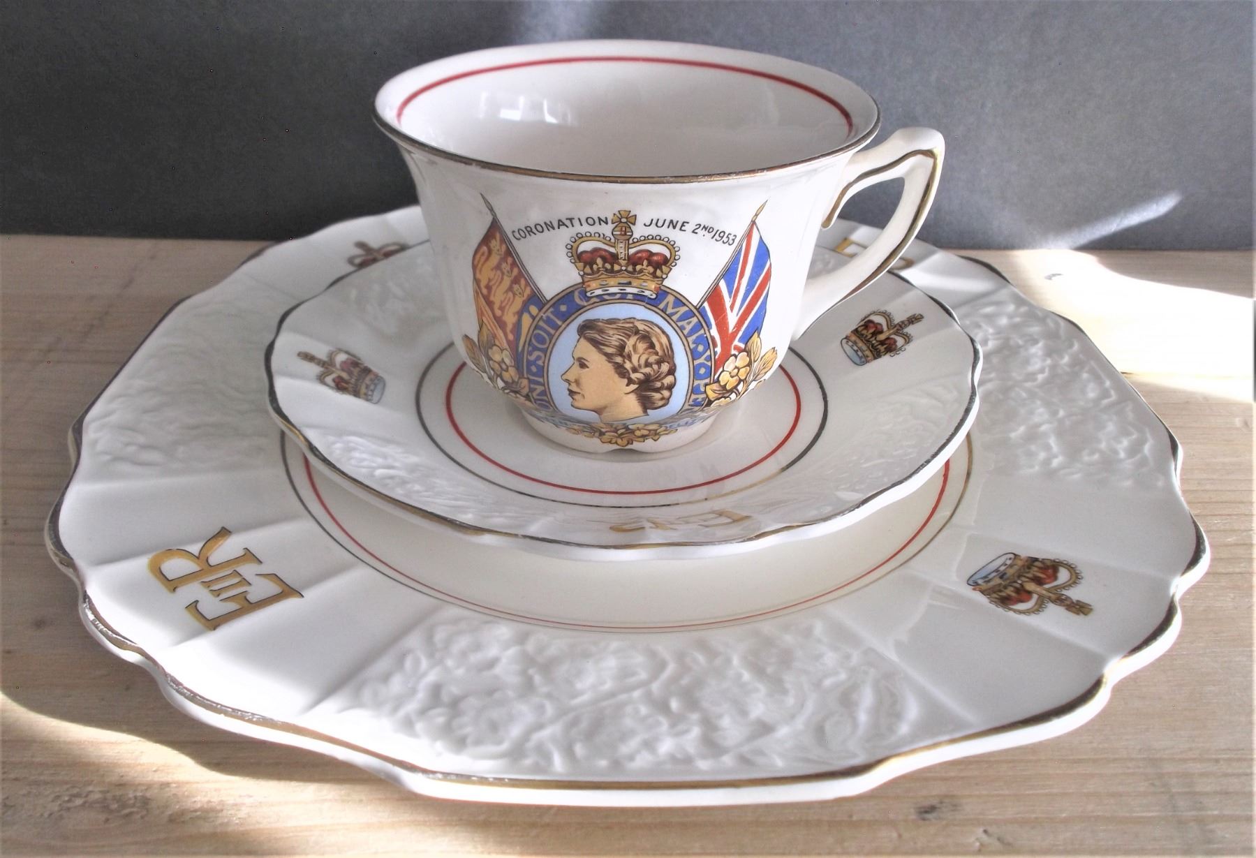 HRM Queen Elizabeth II Coronation Tea Service - Cup, Saucer, and Serving Plate