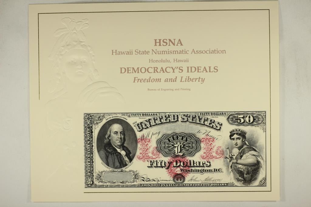 INTAGLIO IMPRINT OF $50 (FACE) SERIES 1874 LEGAL TENDER US NOTE PRINTED BY THE BUREAU OF ENGRAVING AND PRINTING