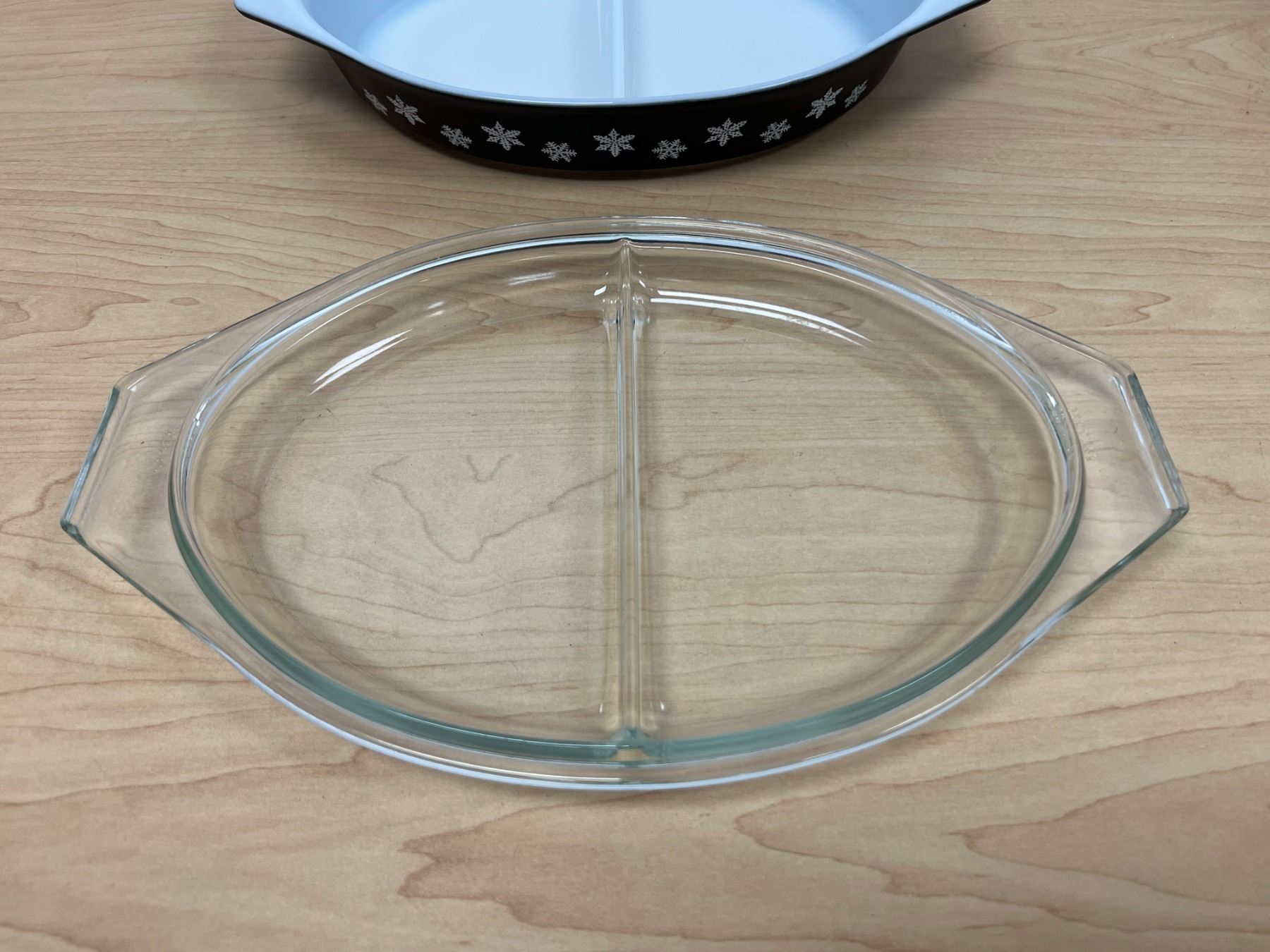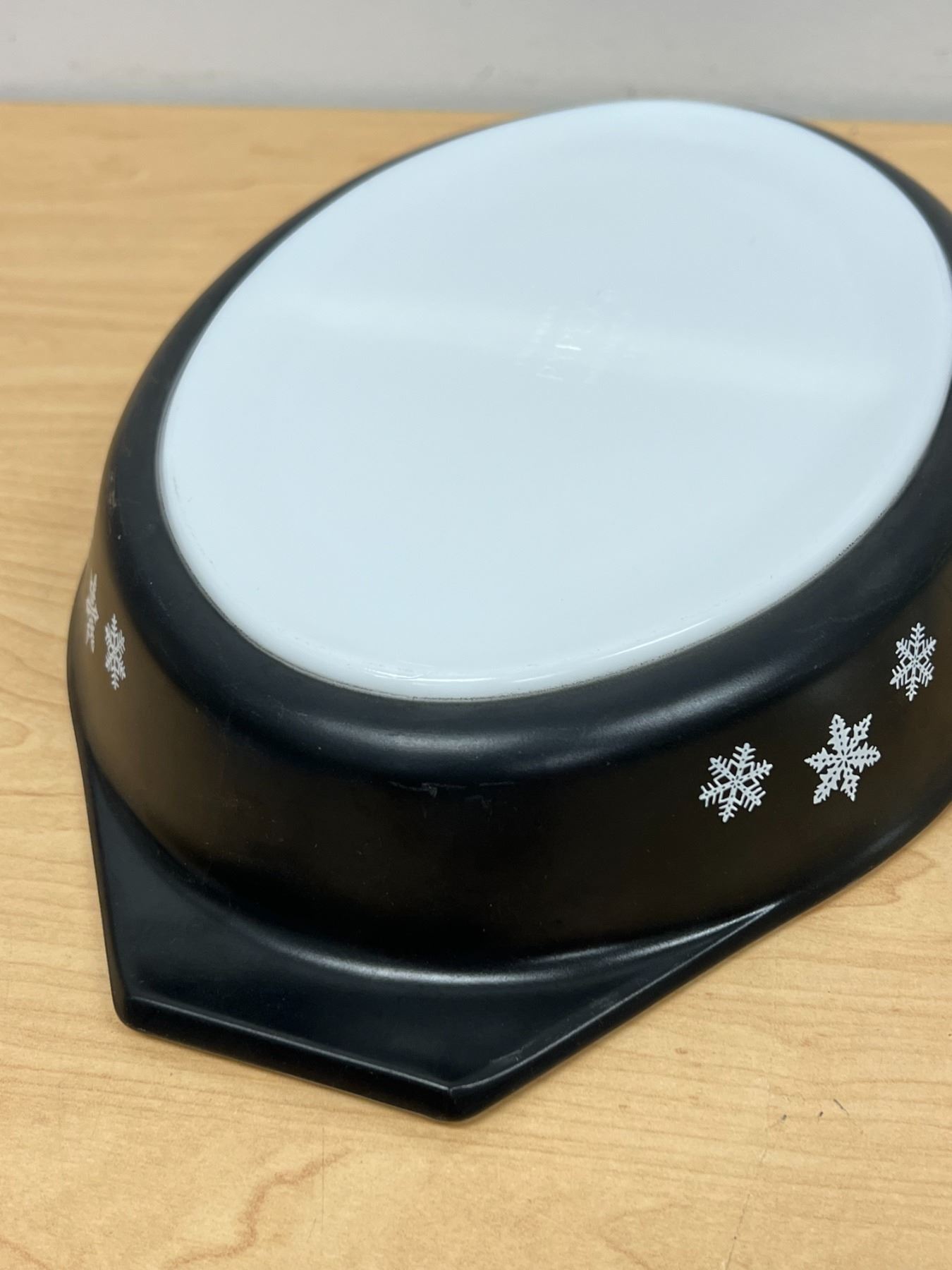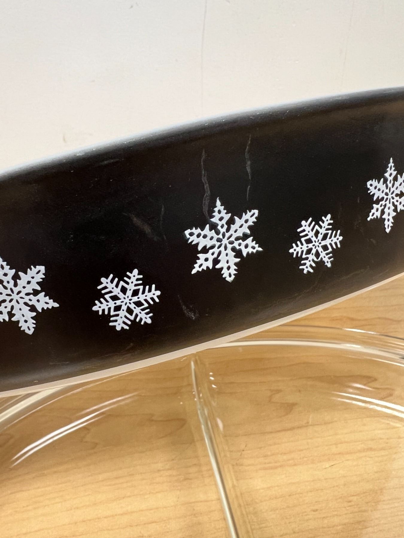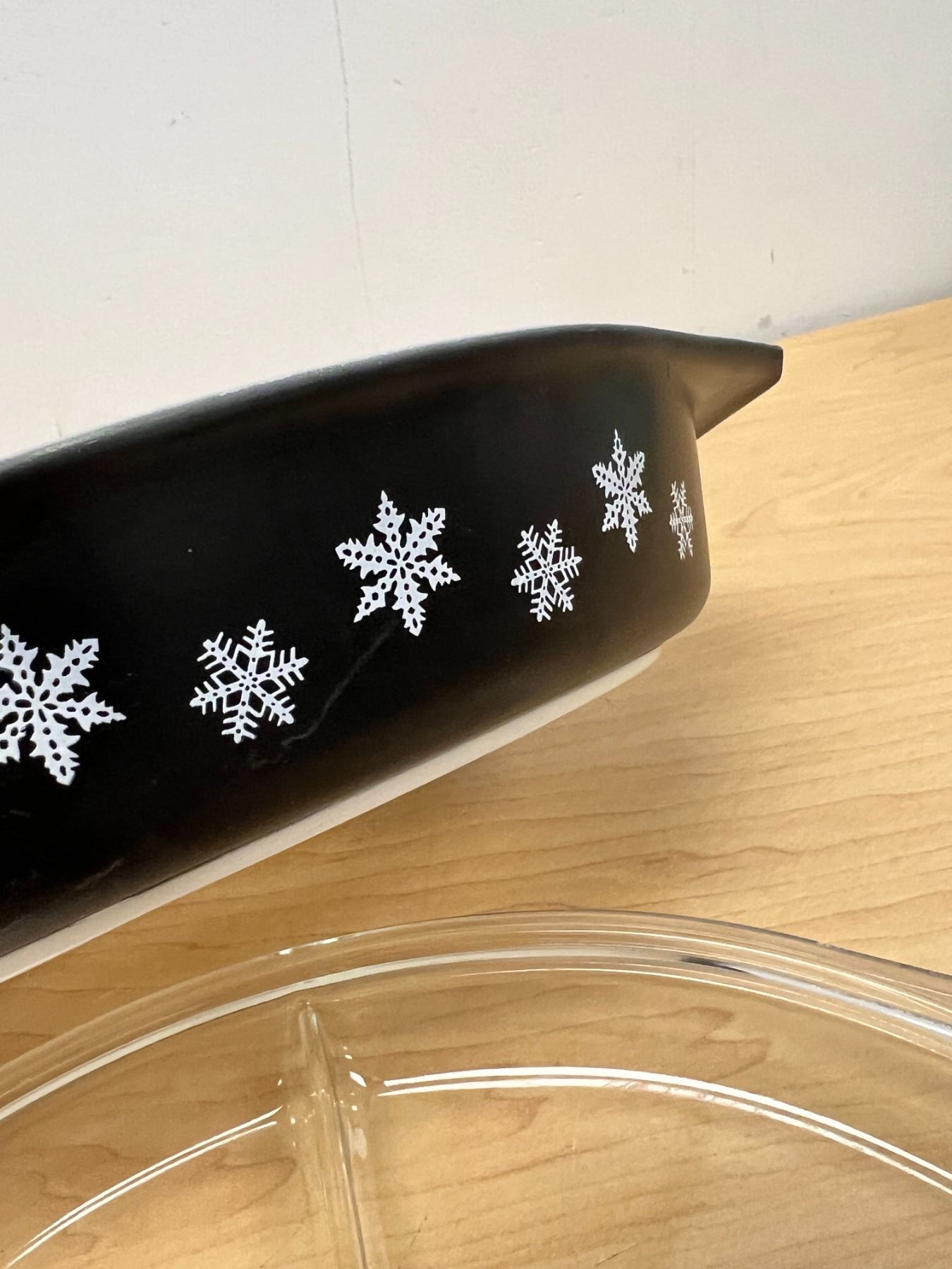 HTF Pyrex Charcoal Black Snowflake Divided Casserole with Lid 1.5 Qt very nice overall