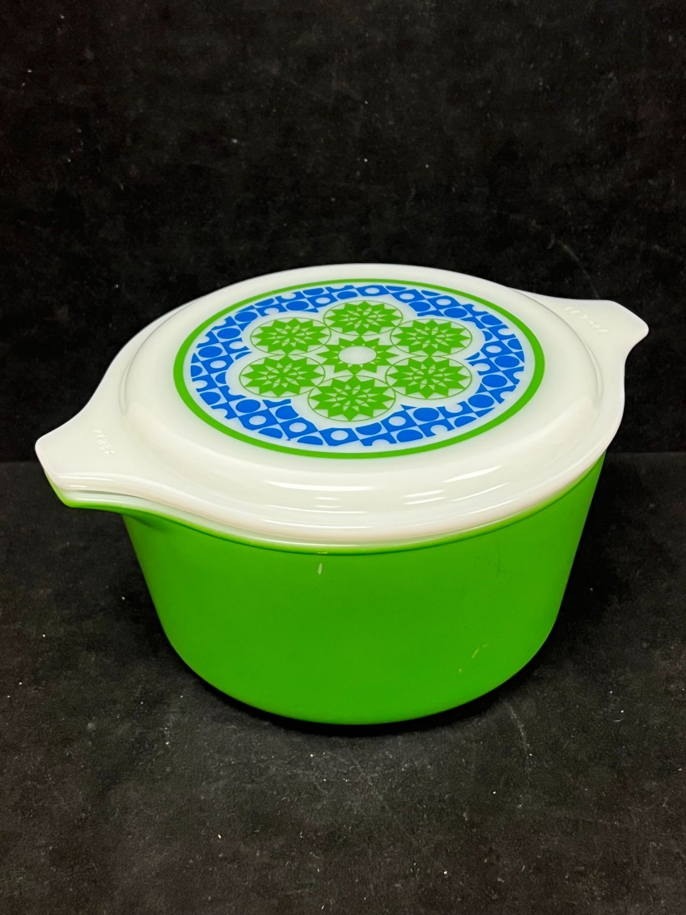 HTF Pyrex Crazy Quilt 473 Casserole & Lid 1 Qt - Really nice with light use marks
