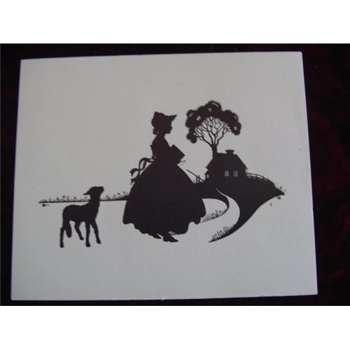This is an authentic HTF - "MARY & LAMB" 3" x 4" W. N. Silhouette. Wallace Nutting introduced silhouettes in 1927. An assistant, Ernest John Donnelly (EJD), drew more than 30 different silhouettes. These silhouettes are machine produced copies of the original-pen type hand-done drawings by "EJD." Silhouettes of women typically have only one woman in them and represent both interior and exterior scenes. They are always marked in one of the three ways. Some have the "EDJ" in a circle, "(c) WN," and some carry both. Occasionally, the mark will be cropped off to fit a picture frame. There are at 22 different WOMEN silhouettes in this size (3" x 4"). Please see other silhouettes including Mr. & Mrs. Nutting, Mother's Day, Christmas & Greeting Cards. NOTE: USPS FIRST CLASS SHIPPING & INSURANCE (USA) - $2.00. (H)