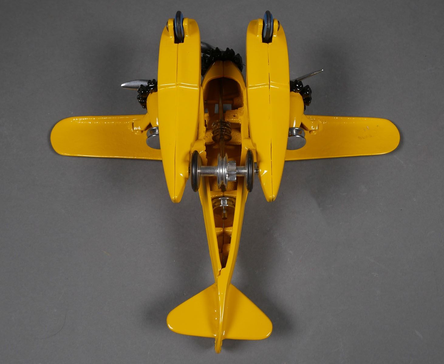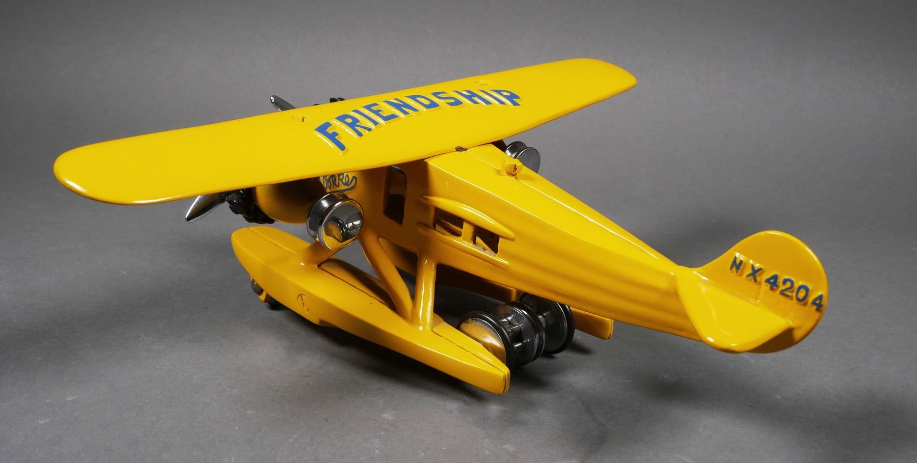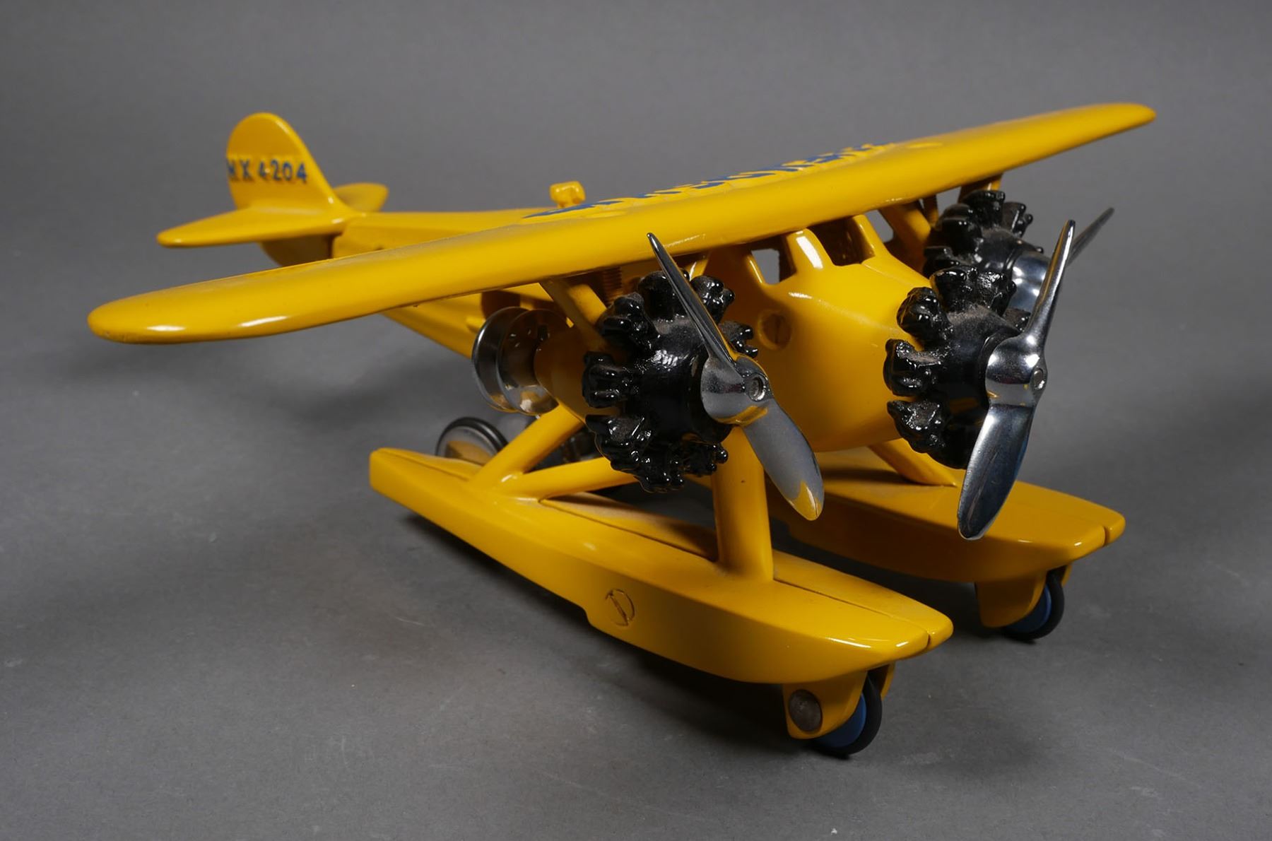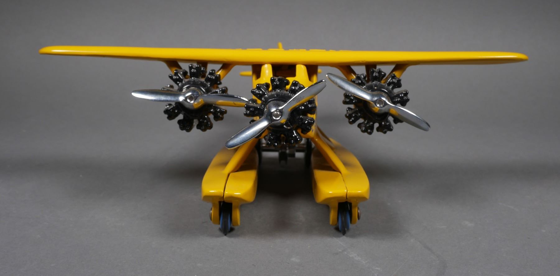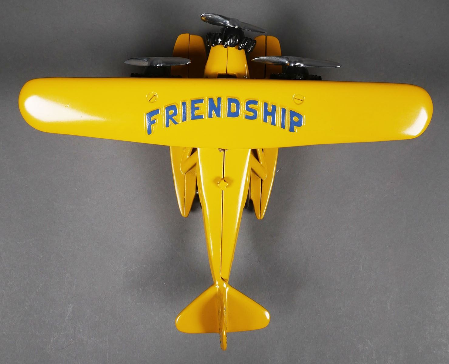RARE Hubley Fokker "Friendship" tri-motor pontoon seaplane. 12 5/8" wingspan. Plane has been re-painted at some point in time & some components may missing or replaced with non original parts. Please see photos for more details on condition. The toys in today's auction are from a show dealer and have been in storage for over 15+ years. Some toys may require some level of cleaning and/or repair for operation.