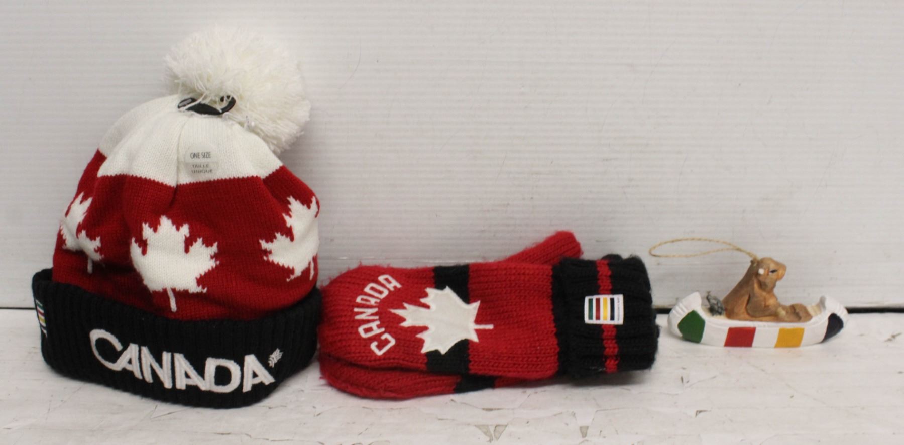 HUDSON BAY LOT W/ MITTS, BEAVER CANOE & NEW TOQUE