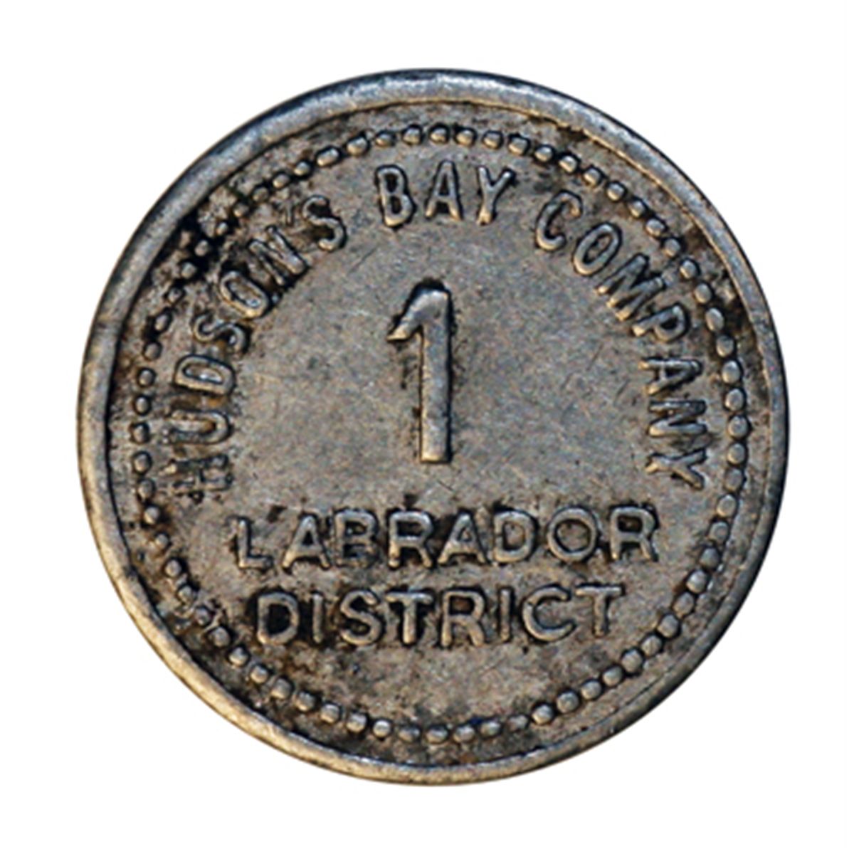 HUDSON’S BAY COMPANY. Labrador District. 1 MB token. Gingras-255. Tin. Uniface. 21mm. (The Labrador District tokens are believed to have replaced the Parson’s tokens, around 1919). VF.
