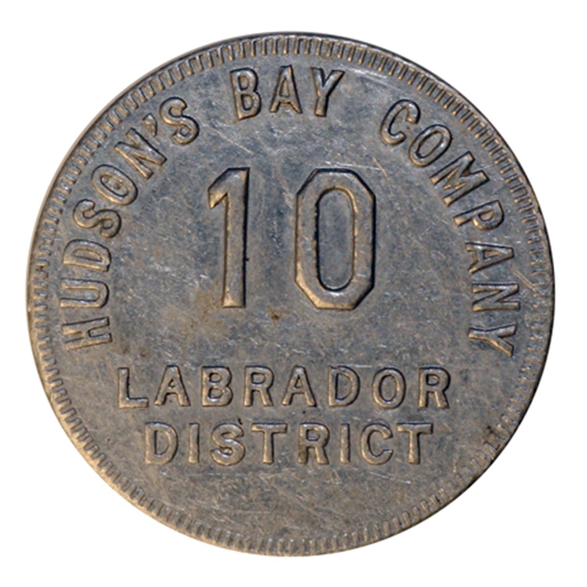 HUDSON’S BAY COMPANY. Labrador District. 10 MB token. Gingras-255c. Tin. Uniface. R-3. 29mm. VF.