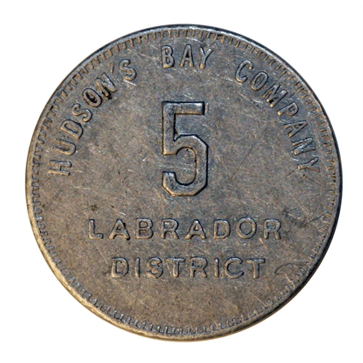 HUDSON’S BAY COMPANY. Labrador District. 5 MB token. Gingras-255a. Reeded border. Tin. Uniface. 25mm. R-3. VF.