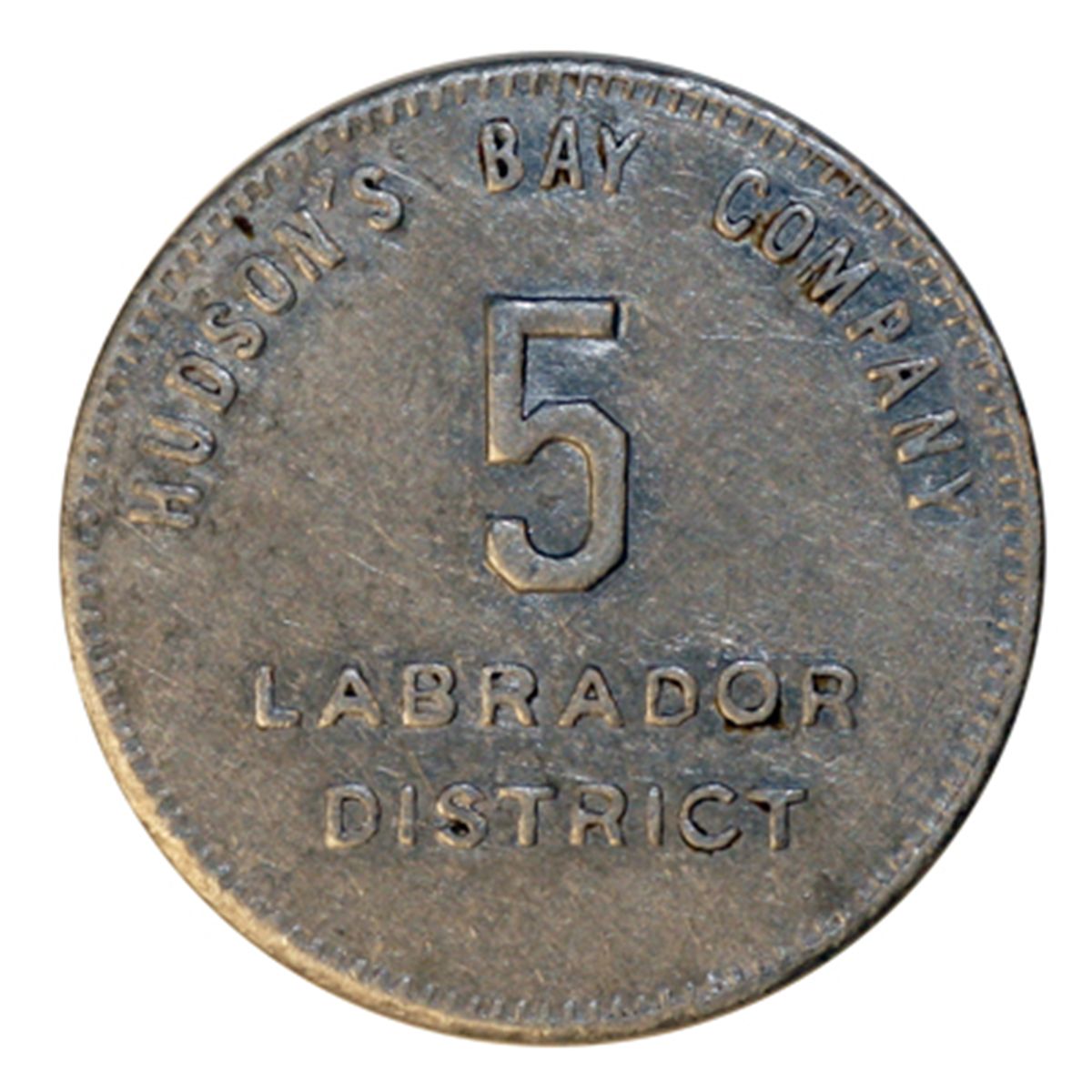 HUDSON’S BAY COMPANY. Labrador District. 5 MB token. Gingras-255a. Reeded border. Tin. Uniface. 25mm. R-3. VF.