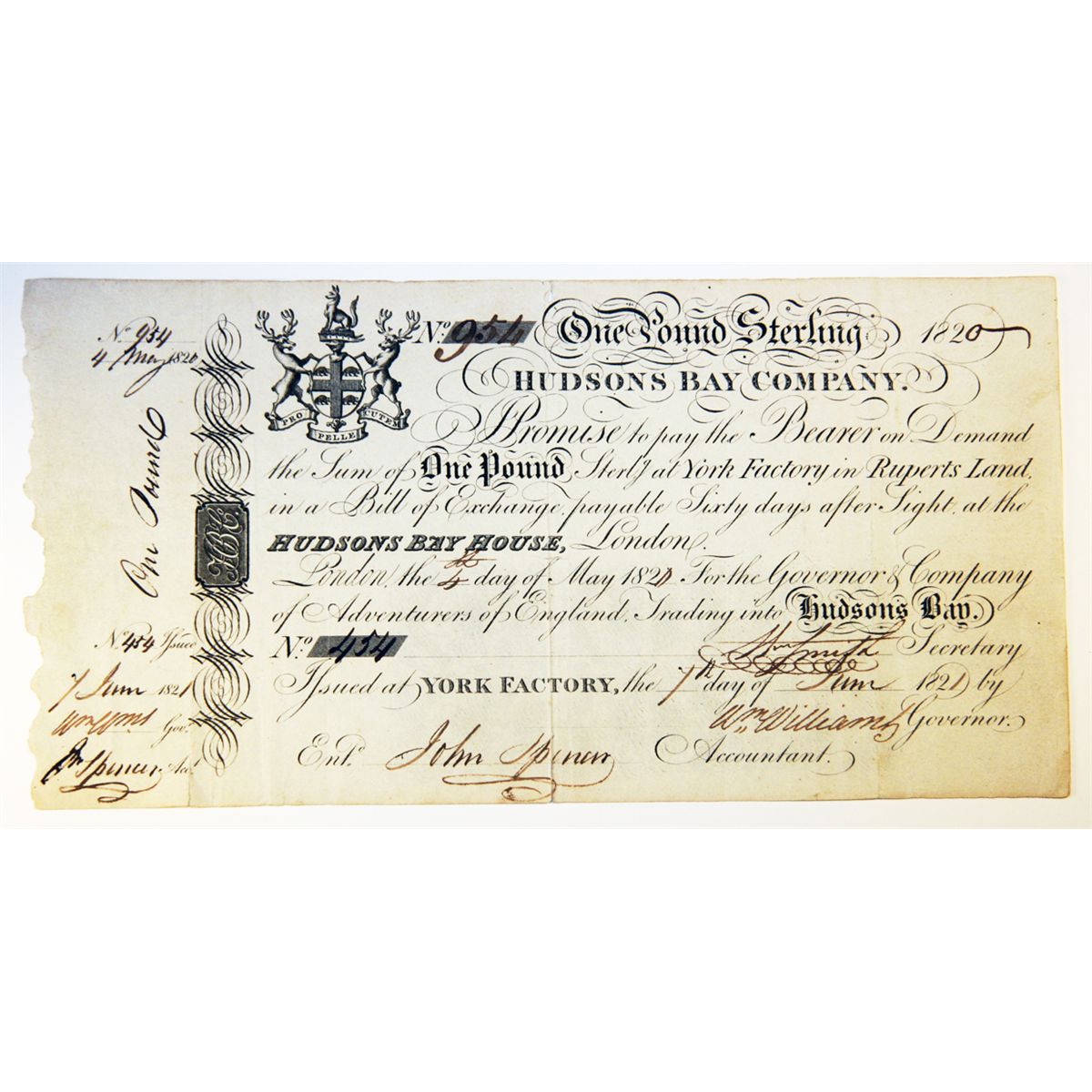 HUDSON’S BAY COMPANY. One Pound. York Factory Issue. London Date: 4 May, 1820. York Date: 7 June, 18