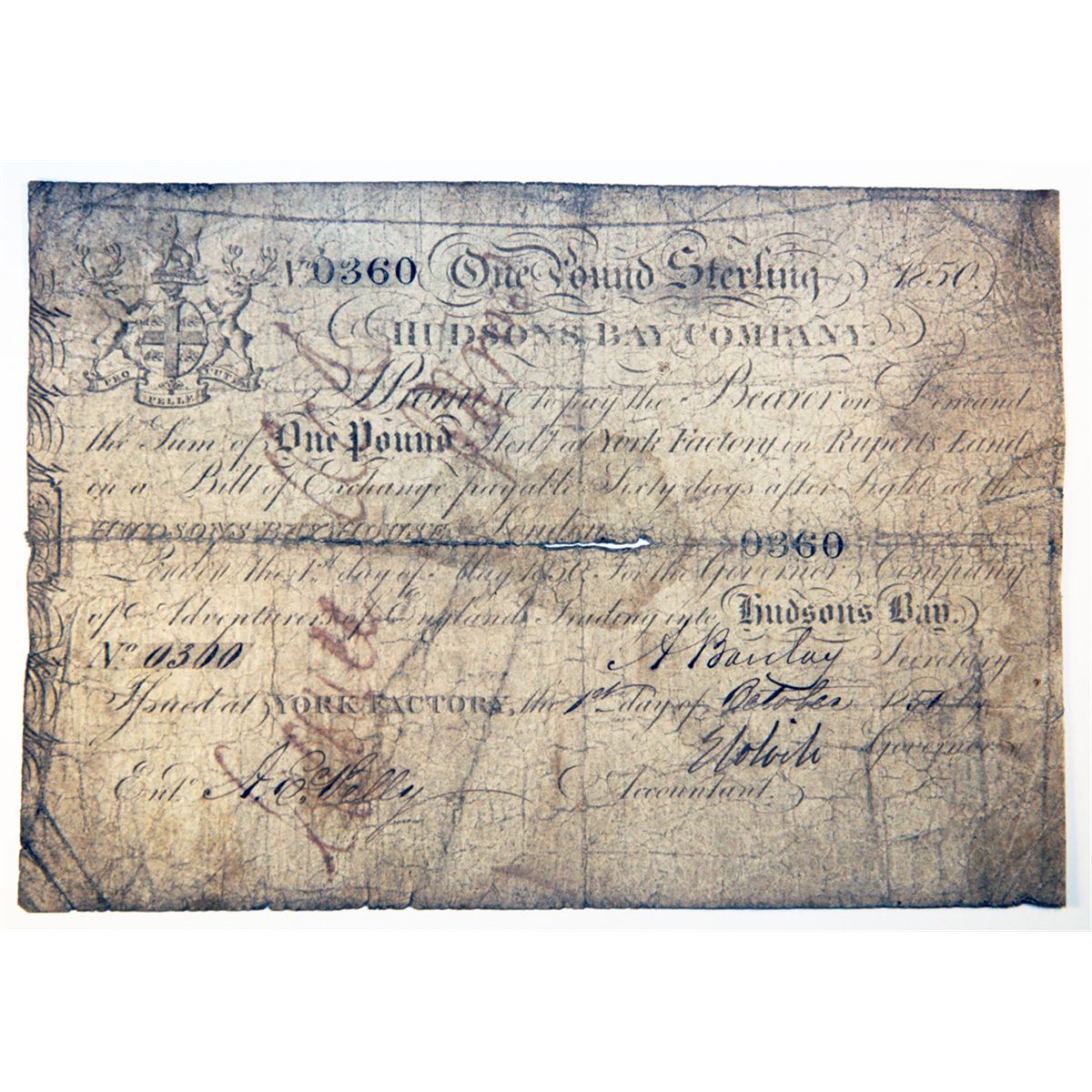 HUDSON’S BAY COMPANY. One Pound. York Factory Issue. London Date: May, 1850. York Date: 1 Oct., 1851
