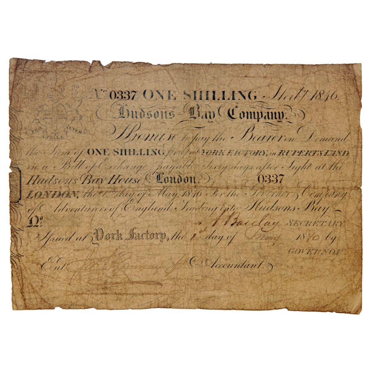 HUDSON’S BAY COMPANY. One Shilling. York Factory Issue. London Date: 1 May, 1846. York Date: 1 May,