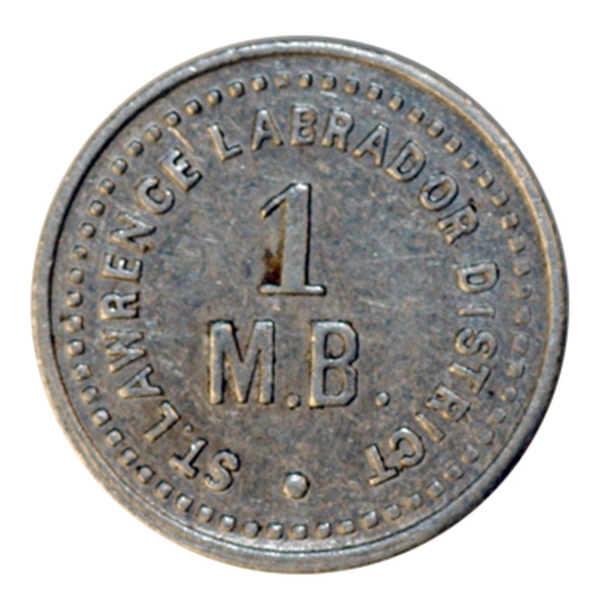 HUDSON’S BAY COMPANY. St. Lawrence Labrador District. 1 MB token. Gingras-260d. Alum. Large lettering. 22mm. VF.