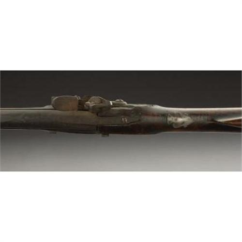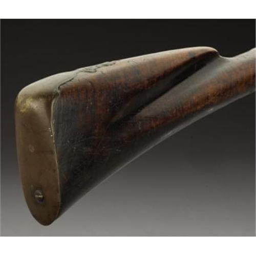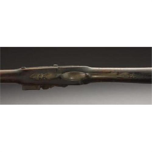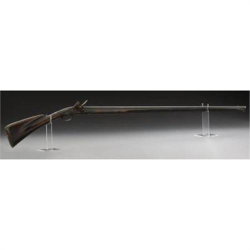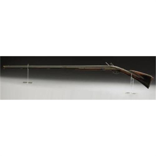 <B>HUDSON VALLEY FLINTLOCK FOWLER.</B></I> Built in the third quarter of the 18th century. 60 caliber, with a 45-inch part octagonal, part round barrel. Overall 61 inches long. Ornate sterling plate at wrist. Engraved brass buttplate and triggerguard. Maple stock, with brass ramrod guides. Relief-chiseled decoration at upper breech area of barrel.<BR><B><BR>Condition:</B></I> Original flintlock configuration with functioning action. Maple stock shows dark old patina with a repaired break forward of wrist area and above lockplate. There is a very old un-repaired break midway on the forestock, also missing a 2-inch sliver of wood in this area. Light pitting on iron parts with very nice dark brown patina. Brass parts untouched with a dark mustard patina. Iron ramrod and old replacement.<BR><BR><b>Shipping:</b> Requires 3rd Party Shipping (<a target="_blank" href="http://www.heritageauctions.com/common/shipping.php">view shipping information</a>)