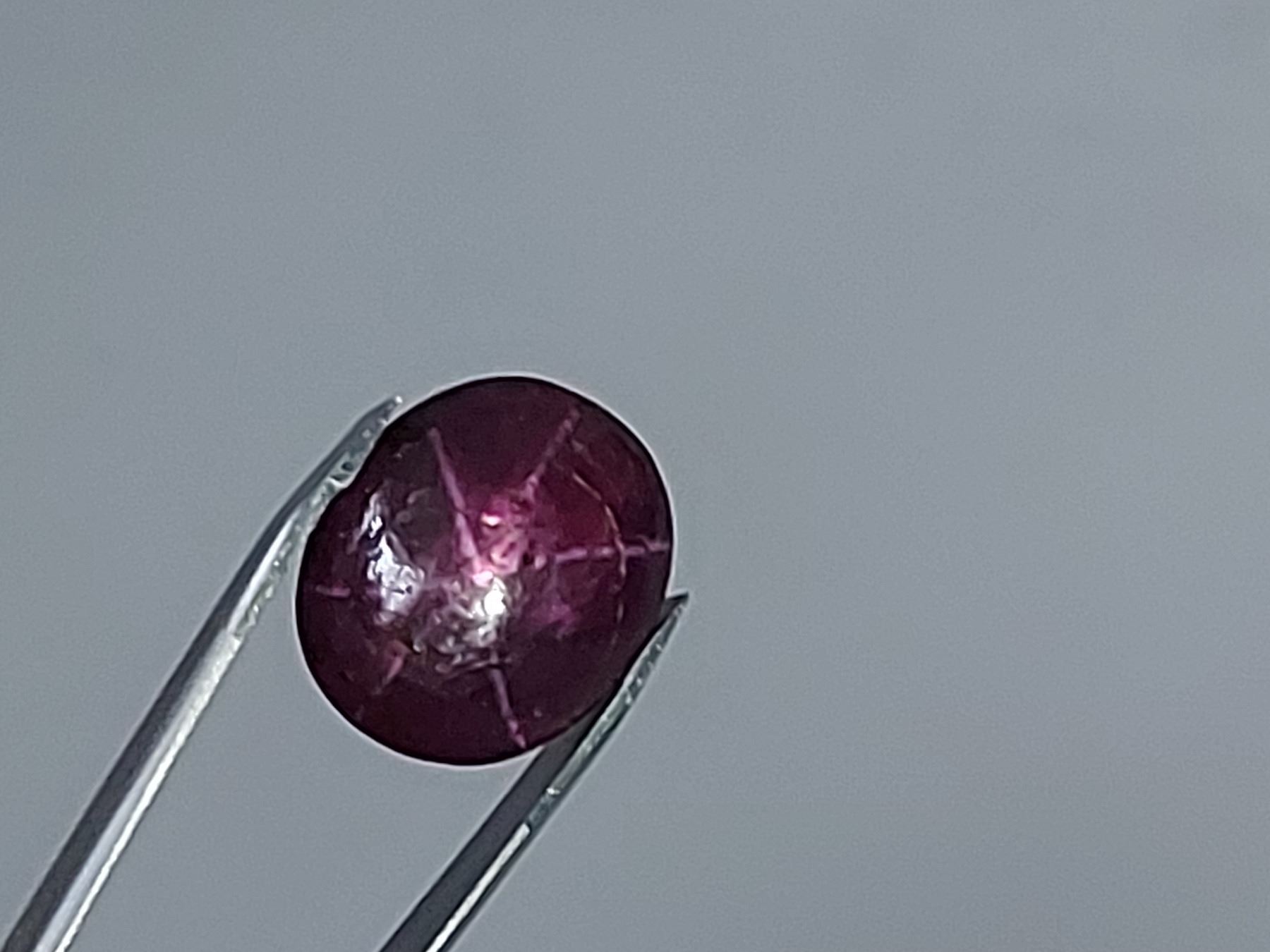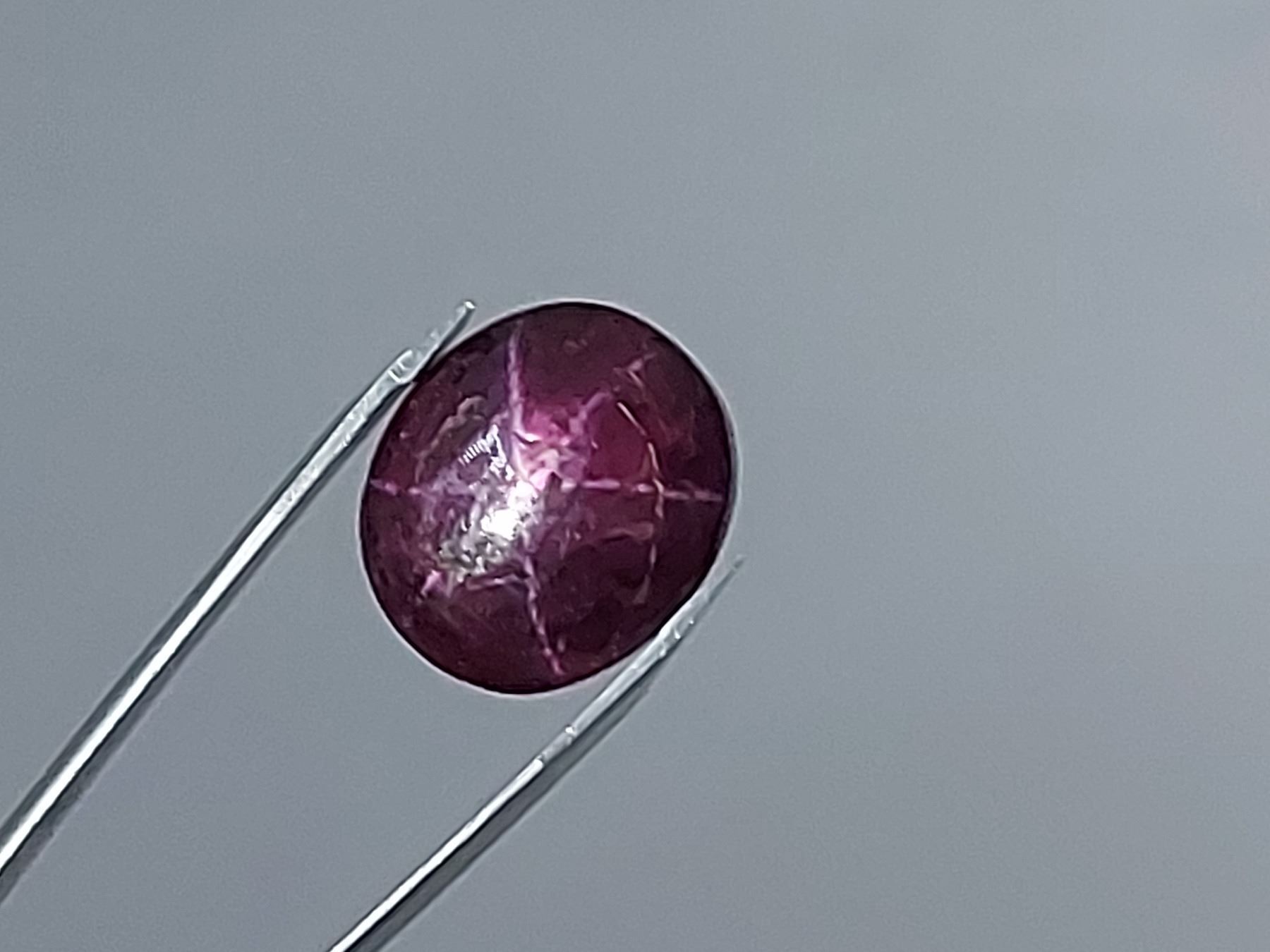 13.65 ct. 14.62 x 12.58 x 7.05 mm Colour: Colour: DARK PINKISH RED, Shape: Oval Cabochon, 6 RAYS STAR , Luster: Excellent Untreated and Unheated