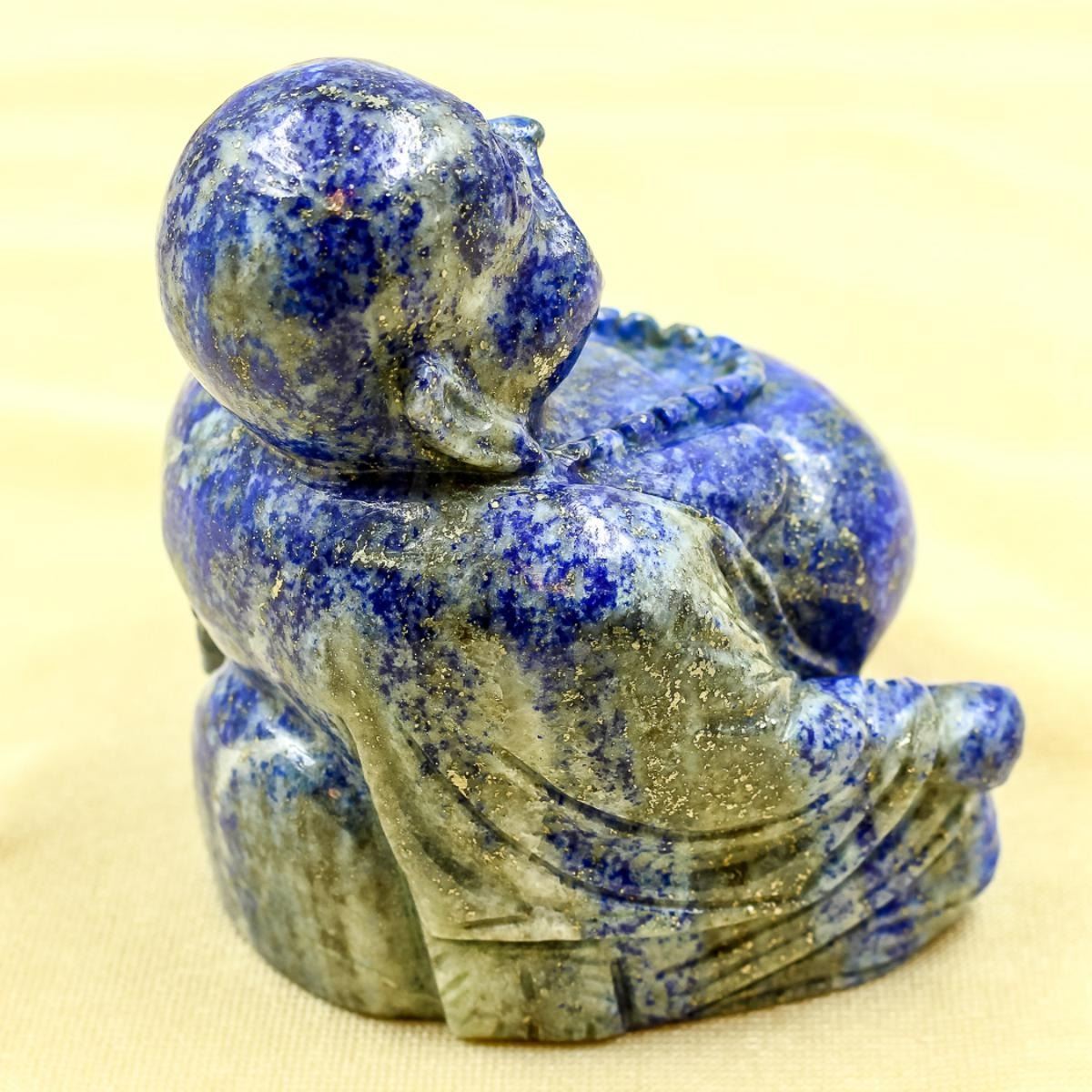 AMAZING RARE MUSEUM SIZE 3060 CT CERTIFIED HAND CARVED BLUE LAPIS LAZULI LAUGHING BUDDHA.UNHEATED 100 % NATURAL NO TREATMENTS.THIS BLUE LAPIS LAZULI HAS THE HIGHLY DESIRED GOLD PYRITE HIGHLIGHTS ARE INCLUDED IN THIS BUDDHA CARVING. BLUE LAPIS LAZULI IS THOUGHT TO STIMULATE THE HIGHER LEVELS OF THE MIND ENCOURAGING CLARITY AND OBJECTIVITY. IT IS ALSO BELIEVED TO ALLOW THE RELEASE OF STRESS BRINGING DEEP INNER PEACE. THIS BEAUTIFUL LAPIS LAZULI BUDDHA MEASURES 82 x 76 x 70 mm. BLUE LAPIS LAZULI IS MOST VALUED FOR IT'S METAPHYSICAL PROPERTIES.WHAT A MAGNIFICANT ADDITION TO ANY ONE'S COLLECTION.