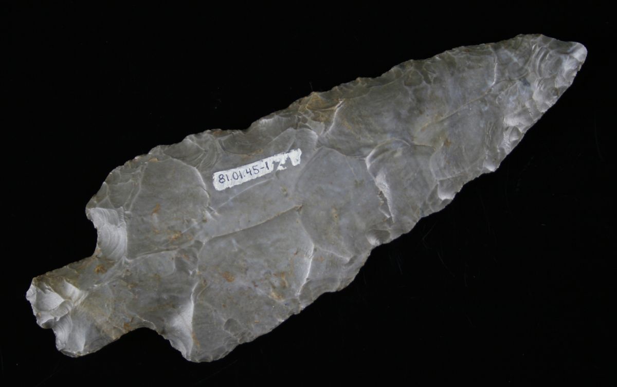 HUGE example from Ohio in gray mottled Coshocton flint. Estate find in of all places..Idaho.