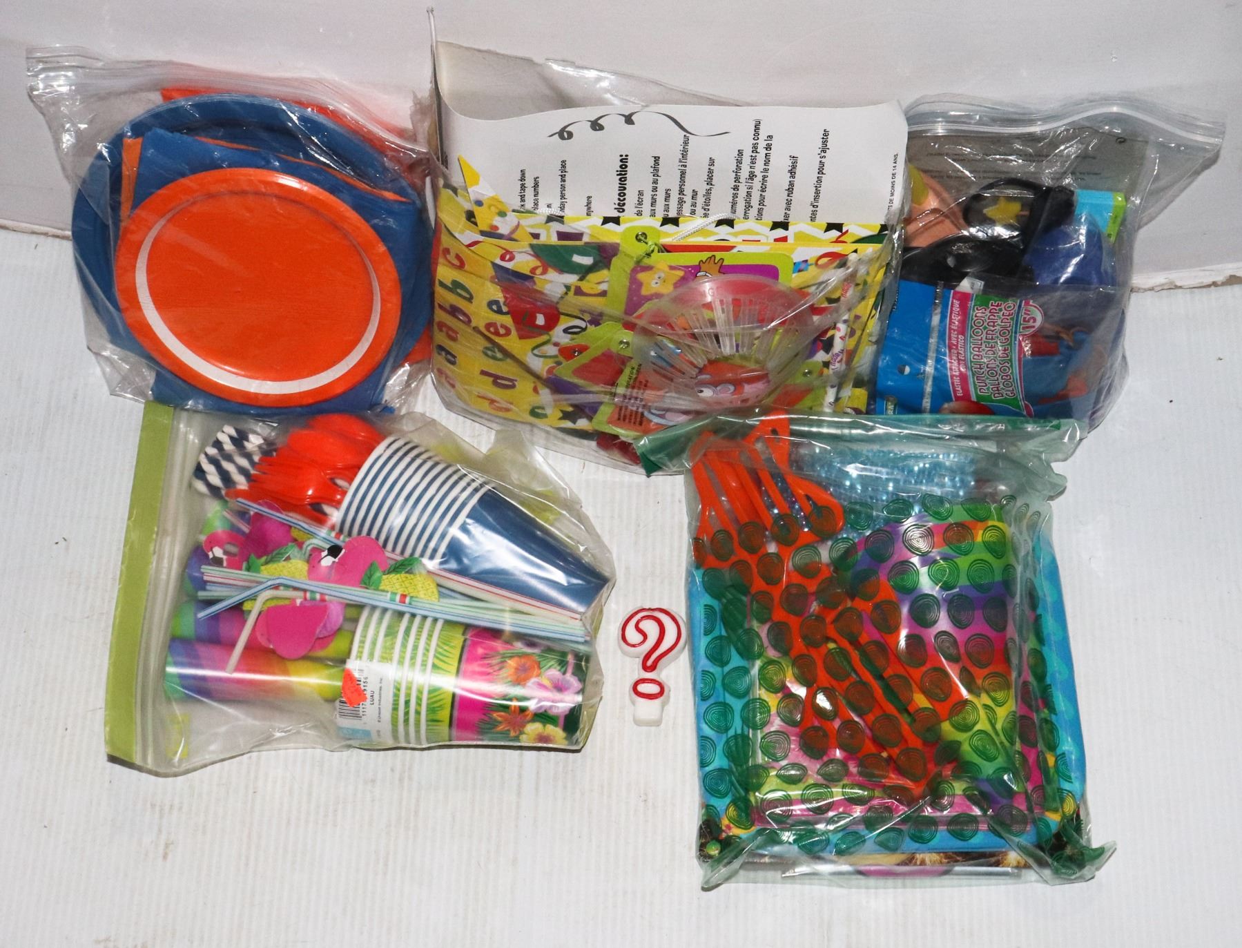 STREAMERS BANNERS PLATES NAPKINS SINGING CANDLES HATS FUNNY FACES NOISE MAKERS GLASSES UMBRELLAS LOTS MORE