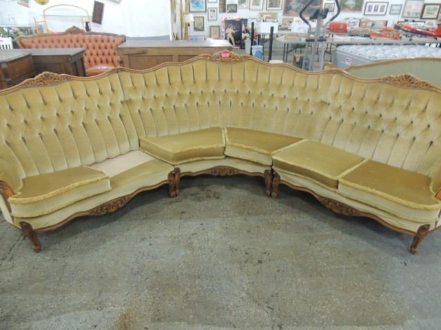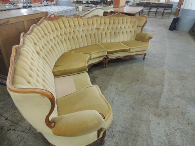 HUGE ANTIQUE HALF MOON SHAPED SOFA COUCH 3 PIECE