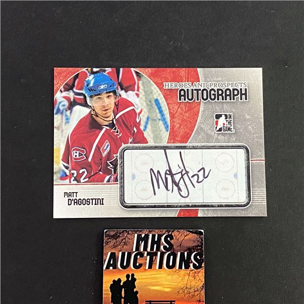 MATT D'AGOSTINI 2007 IN THE GAME AUTOGRAPH HOCKEY CARD