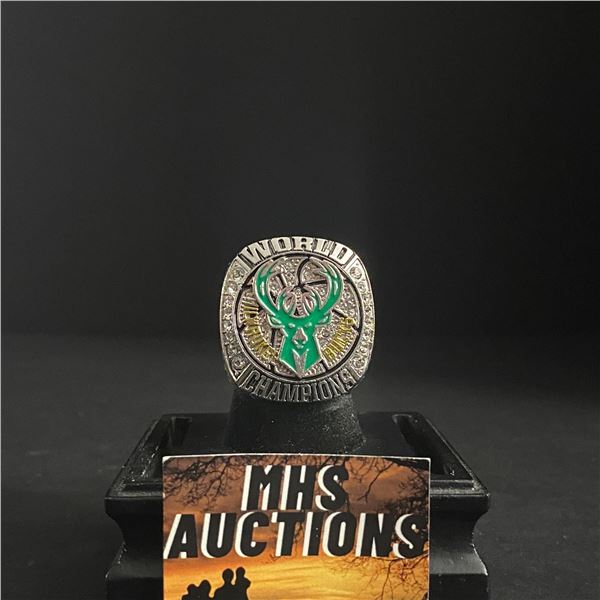 MILWAUKEE BUCKS 2021 "ANTETOKOUMPO" CHAMPIONSHIP REPLICA RING EXCELLENT RING FOR ANY FAN OR COLLECTOR. HEAVY DUTY. EXCELLENT QUALITY.