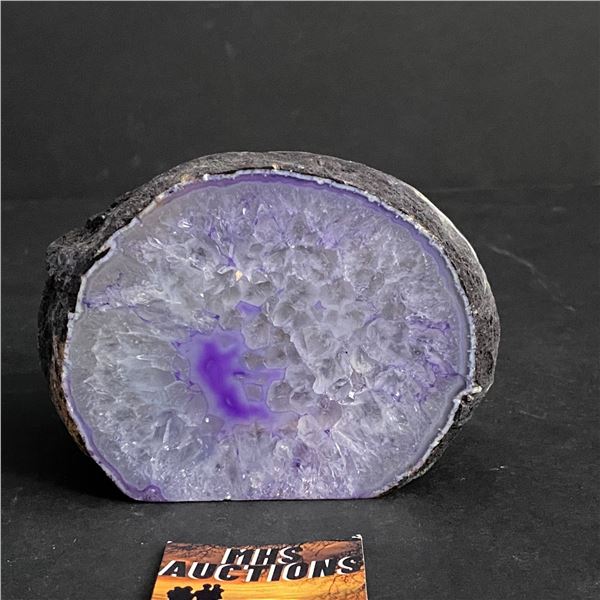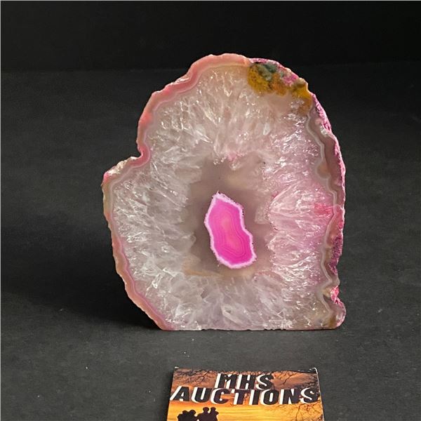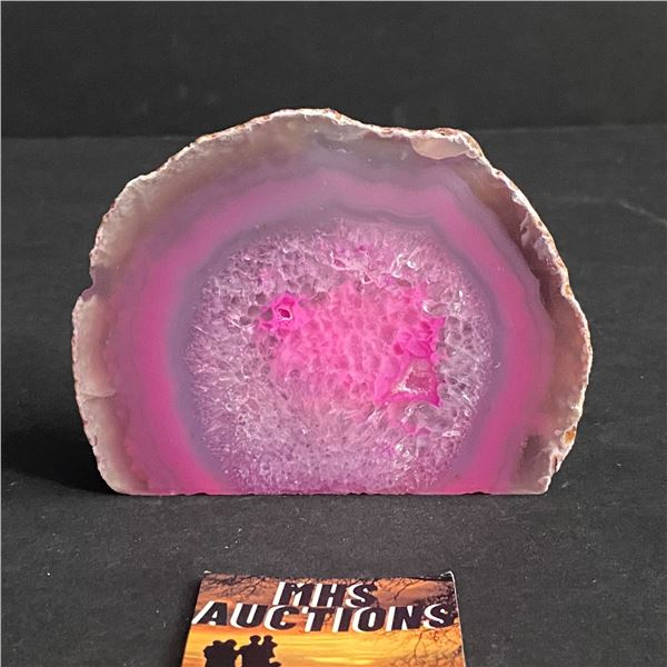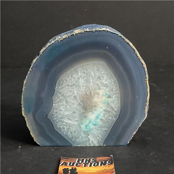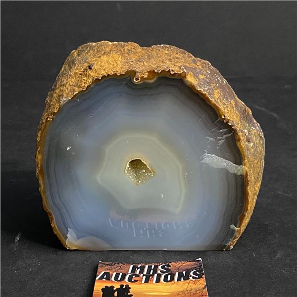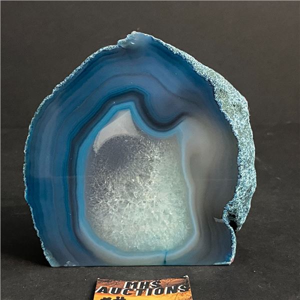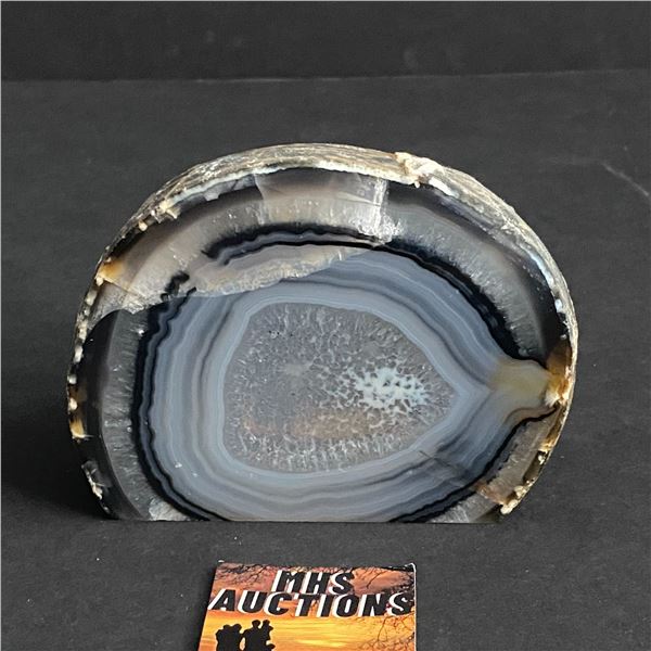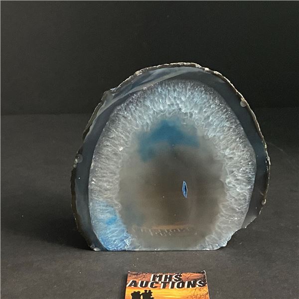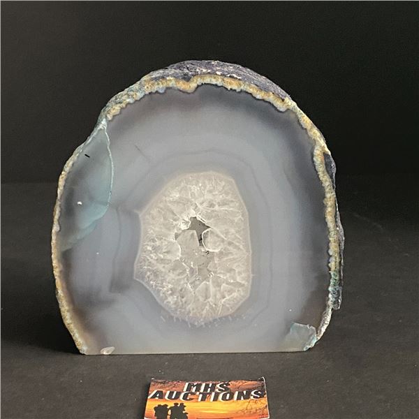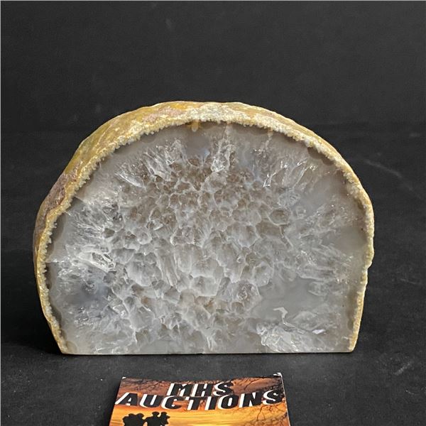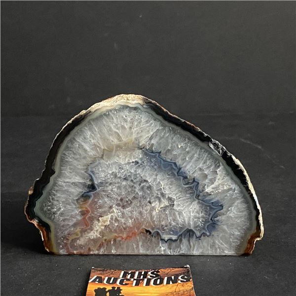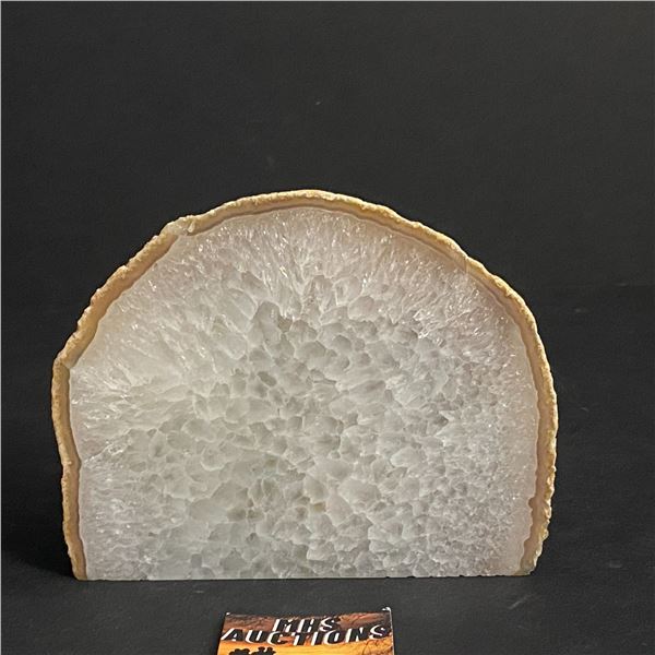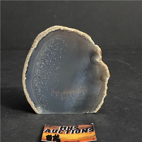 AGATE POLISHED ONE SIDE CRYSTAL ROCK APPROX SIZE = 3 1/2 INCHES X 5 INCHES MADE IN BRAZIL