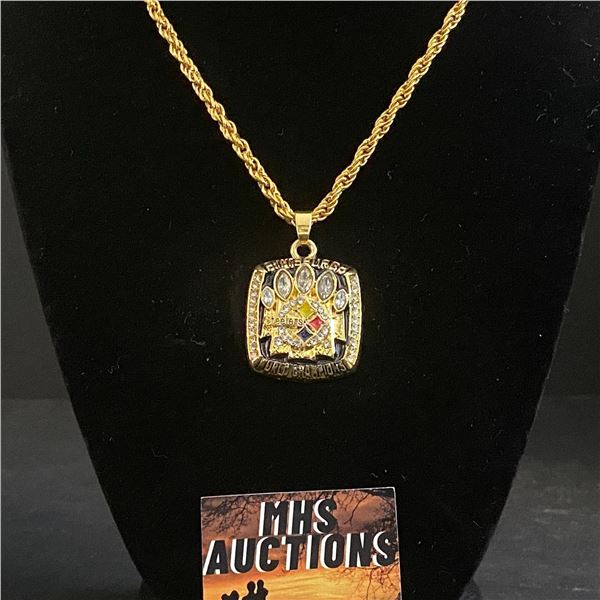 PITTSBURGH STEELERS N.F.L 2008 CHAMPIONSHIP NECKLACE EXCELLENT NECKLACE FOR ANY FAN OR COLLECTOR HEAVY DUTY. EXCELLENT QUALITY.