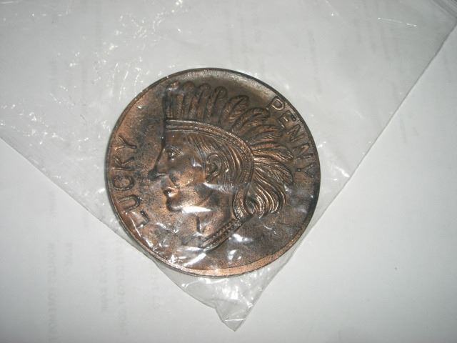 HUGE COPPER *INDIAN HEAD PENNY* COIN-HEAVY APPROX WIDTH ACROSS IS 2 1/2"!! COIN CAME OUT OF SAFE!! ***Coin, Currency & All Items Listed in this auction - Grades, Conditions and Values are not Safe Deposit Coins LLC Responsibilty. Grades, Condition and Values are determined by Consigner(s) & Buyers ONLY
