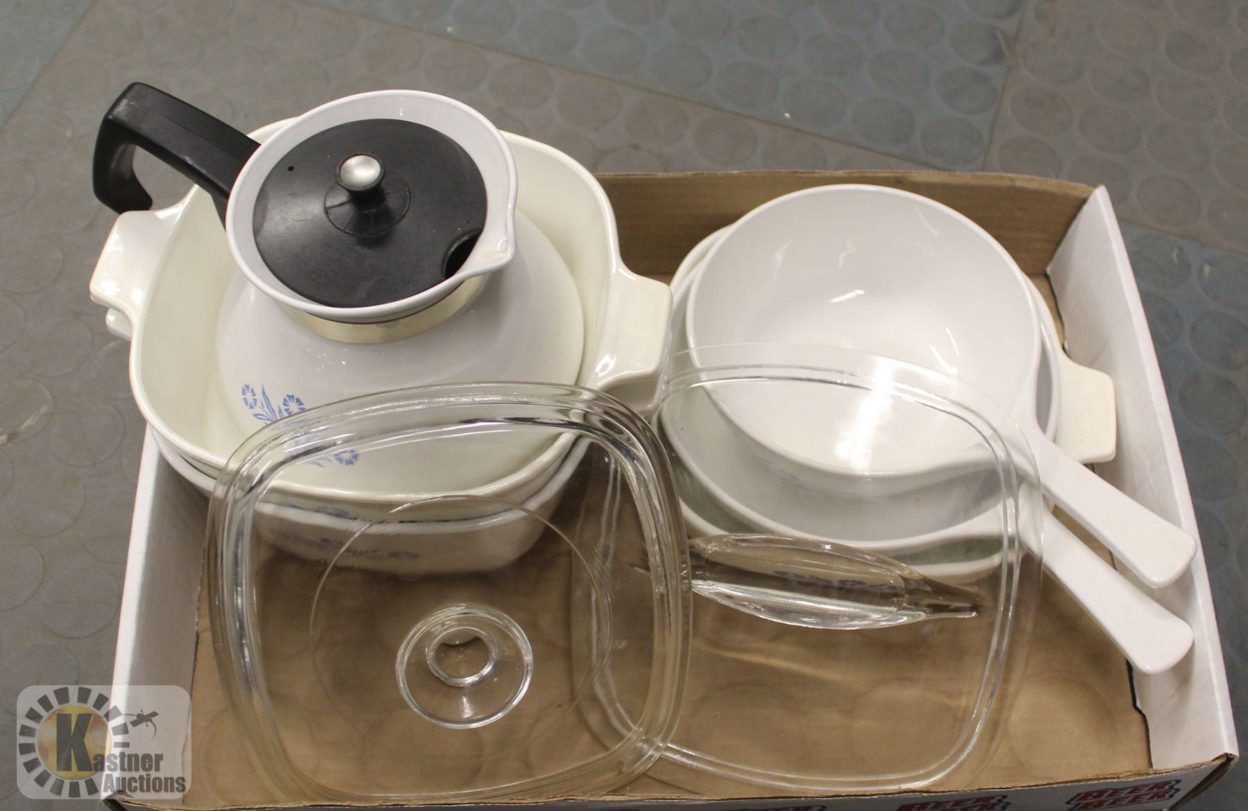 HUGE FLAT OF CORNING WARE TEAPOT/BOWLS/LIDS MORE