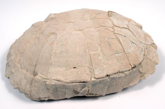 HUGE FOSSIL BADLANDS TURTLE. Stylemys nebrascensis was a 30 million year old turtle that roamed the White River Formation of the Badlands of South Dakota. This huge 15 x 12 inch turtle is one of the largest ever offered at auction. The average size is usually only 5-8 inches long. The white outer carapace is remarkably complete with only a few plates moved slightly from the millions of years of fossilization. Stylemys’ carapace was formed by a series of scutes made of keratin originally. Keratin is the same material that our finger nails are made of. About 80 percent of the underside of the turtle, the plastron, which was formed by bony plates is preserved along with some white leg bones which are clearly still buried in the matrix. The shape and appearance is of museum quality with little distortion of the shape of the outer shell. A rare opportunity to buy a really large museum quality turtle.