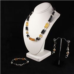 Various Semi Precious Gemstone Handmade Crafts Necklace **|**|** 505.50CARAT Handmade Necklace w/ Various Semi Precious Stones; 100% Black Silk layere