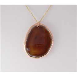 Organic Natural Yellow Brown Agate Big Slice Pendant