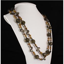 Freshwater Pearl & Bold Round Crystal Long Necklace **|**|** 751.00CARAT Handknotted Freshwater Pearls and Multifaceted Round Crystal Long Neckl...