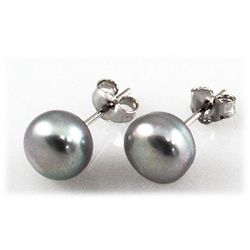 7.67ctw Natural Freshwater Pearl Stud Earring **|**|** Natural Sterling Silver Stud Earring Freshwater Pearls Color Gray, 8mm round ; MSRP: $300
