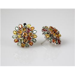 Multi Gemstones Oval Flower Silver Earring, 7.90g
