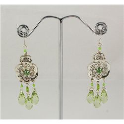 Beautiful Set of Natural Green Tourmaline Necklace, Bra **|**|** 525.50ctw Green Tourmaline Necklace, Bracelet and Earring in Silver ; MSRP: $300