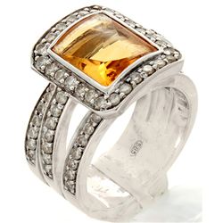 14K White Gold 3.99ctw Citrine & Diamond Ring