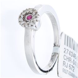 14K White Gold 0.10ctw Ruby & Diamond Ring