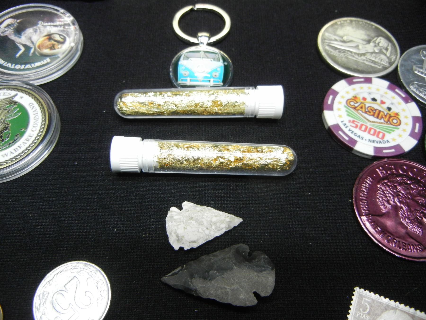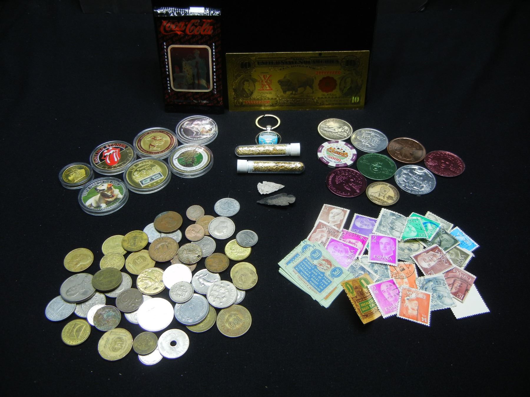 HUGE LOT (19.11 OZ) OF "JUNK DRAWER COLLECTABLES" (SILVER/PROOF TOKENS/VIALS/ARROW HEADS/FOREIGN COINS, MISC.)