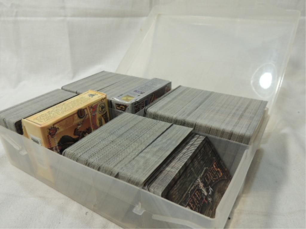 HUNDREDS OF DEADLANDS COLLECTIBLE CARDS IN HARD PLASTIC CASE.