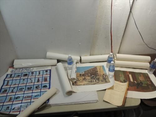 HUGE LOT OF 1967 PRINTS: ILLINOIS HISTORY IN PAINTINGS. 4 SETS ON CIVIL RIGHTS & 3 SETS ON HISTORY OF ILLINOIS. LARGE GROUP OF BELL TELEPHONE HISTORY POSTER. AS SHOWN. VIEW PICTURE FOR DETAIL.