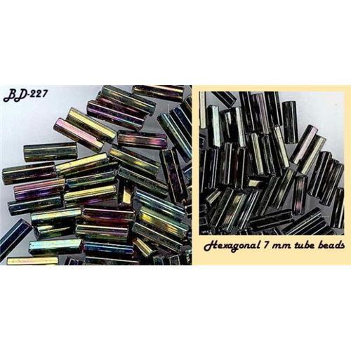 Please note that for Ebay Live Auction only bids at or above $150 will be successful and meet our reserve!!! 20000 + BEADS....These are Czech Vintage hex shape (6 sided) iridescent black glass tube beads. Dimension : approximately 2.5mm in diameter, 7mm long. Shape : 6 sided tube. Age : 1940-60's. To show better detail, pictured is (washed) randomly picked assortment, which contains only few beads - but remember, you are buying lot, which has at least 20000 beads....To save you some time, here are some figures (based on the pictured assortment) what is, or what can you do with 20000 beads : if strung, the length would be 5511 inches or 459 feet, which would make 306 necklaces 18" long.. Again, you are bidding on bulk lot of at least 20000 beads. The beads accumulated over the years some dust and will need to be washed. This lot will arrive as loose beads or broken up strand - beads may have less iridescence than picured. Local bead shop sells comparable (new) beads 500/$9.00, which would make value of this lot $360, our reserve is much less ($150). Pictured is Langani Jewelry, for which this type of beads were used. We have large quantity of Vintage beads - designers and dealers please inquire.