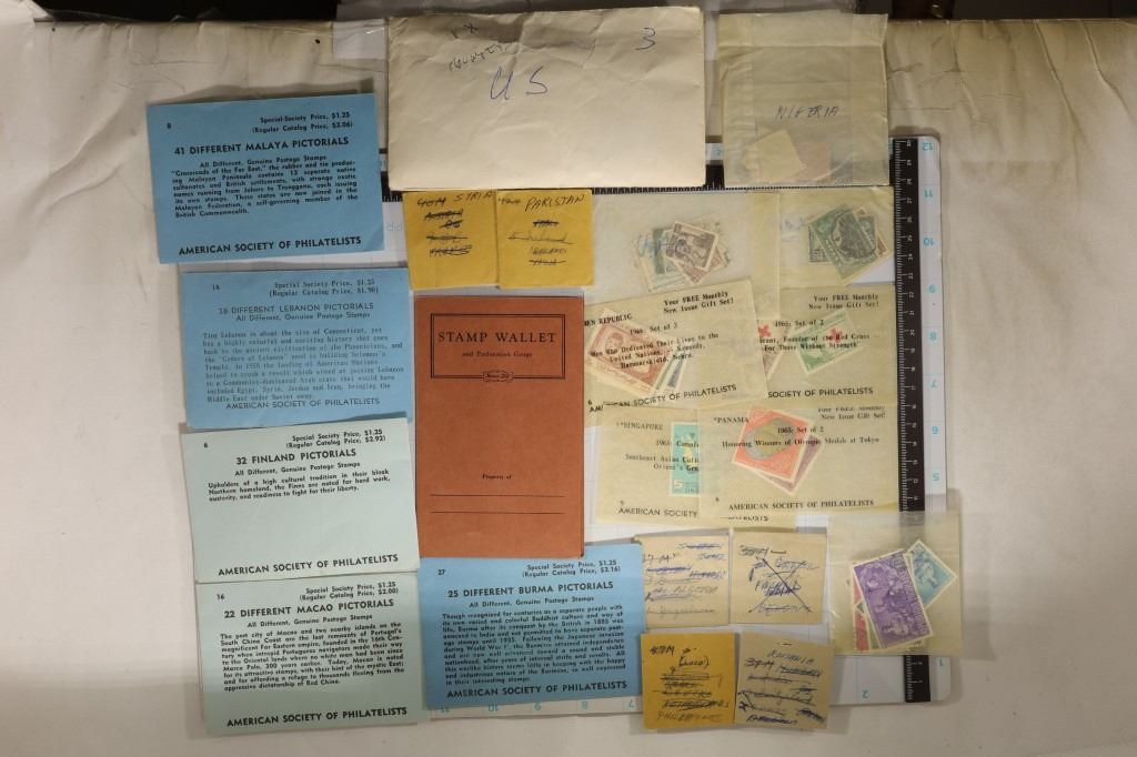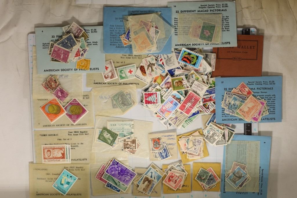 WORLD. APPROX. 18 OR SO DIFFERENT COUNTRIES. SOME BRAND NEW AND MOSTLY CANCLED. NEW STAMP WALLET ETC... START OR ADD TO YOUR COLLECTION WITH THIS GREAT VARIETY! THERE ARE A LEAST A COUPLE HUNDRED. THE 2ND PICTURE IS ALL THE