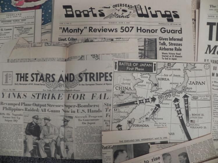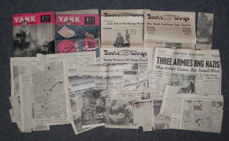 HUGE LOT OF WAR NEWSPAPERS, CLIPPINGS, YANK & GI PAPERS