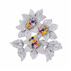 One 18KT White Gold 3.11ctw Multi Color Sapphire and Diamond Brooch. (25) Multi Color Sapphires with a total weight of 3.11cts. (448) Diamonds with a