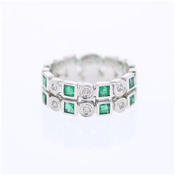 One 14KT White Gold 0.73ctw Emerald and Diamond Ring. (8) Emeralds with a total weight of 0.73cts. (6) Diamonds with a total weight of 0.14cts. The to