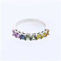 One 14KT White Gold 1.29ctw Multi Color Sapphire Ring. (8) Multi color Sapphires with a total weight of 1.29cts. Total weight of this ring is 3.23 gra