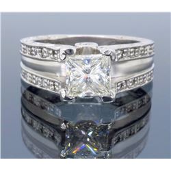 One Platinum 1.75ctw Diamond Ring. (1) Princess cut center Diamond with a total weight of 1.05cts with a color of I-J and clarity of SI-2. (82) round