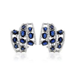 18KT White Gold 6.38ctw Blue Sapphire and Diamond Earrings142 - 18KT White Gold 6.38ctw Blue Sapphire and Diamond Earrings